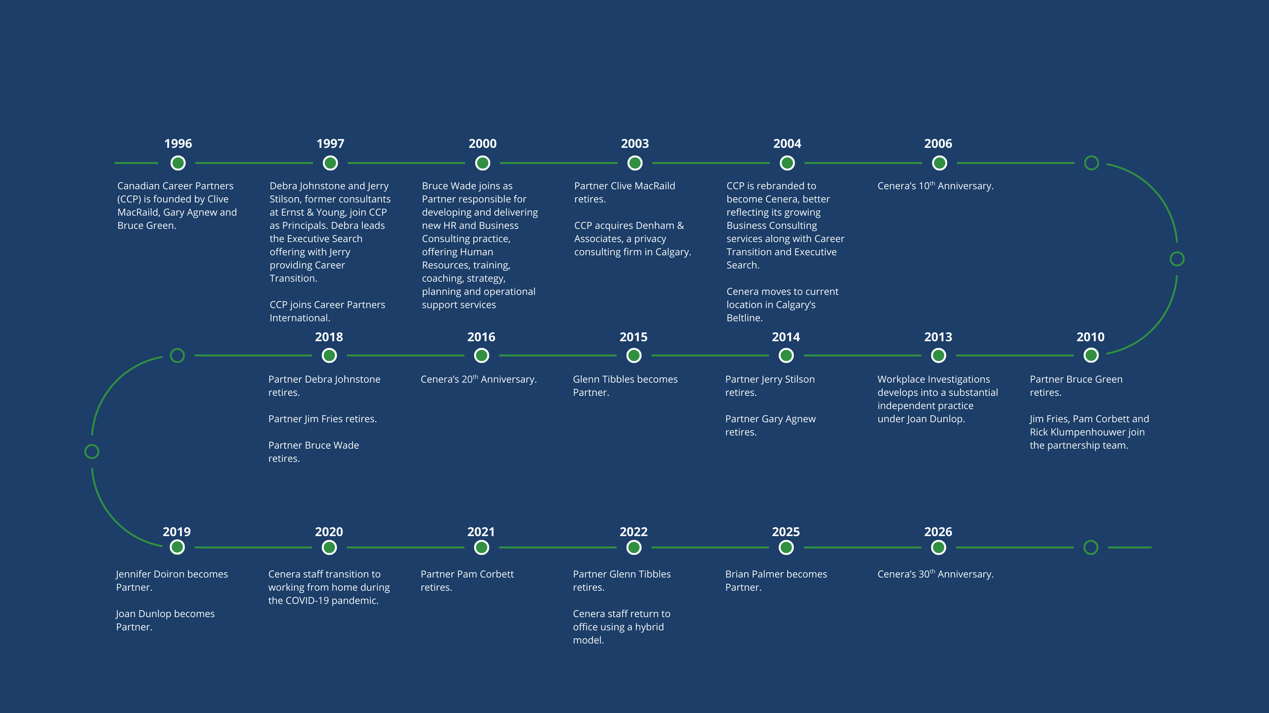 In 2004, we rebranded and became Cenera. But our purpose - People • Strategy • Solutions - has remained constant.